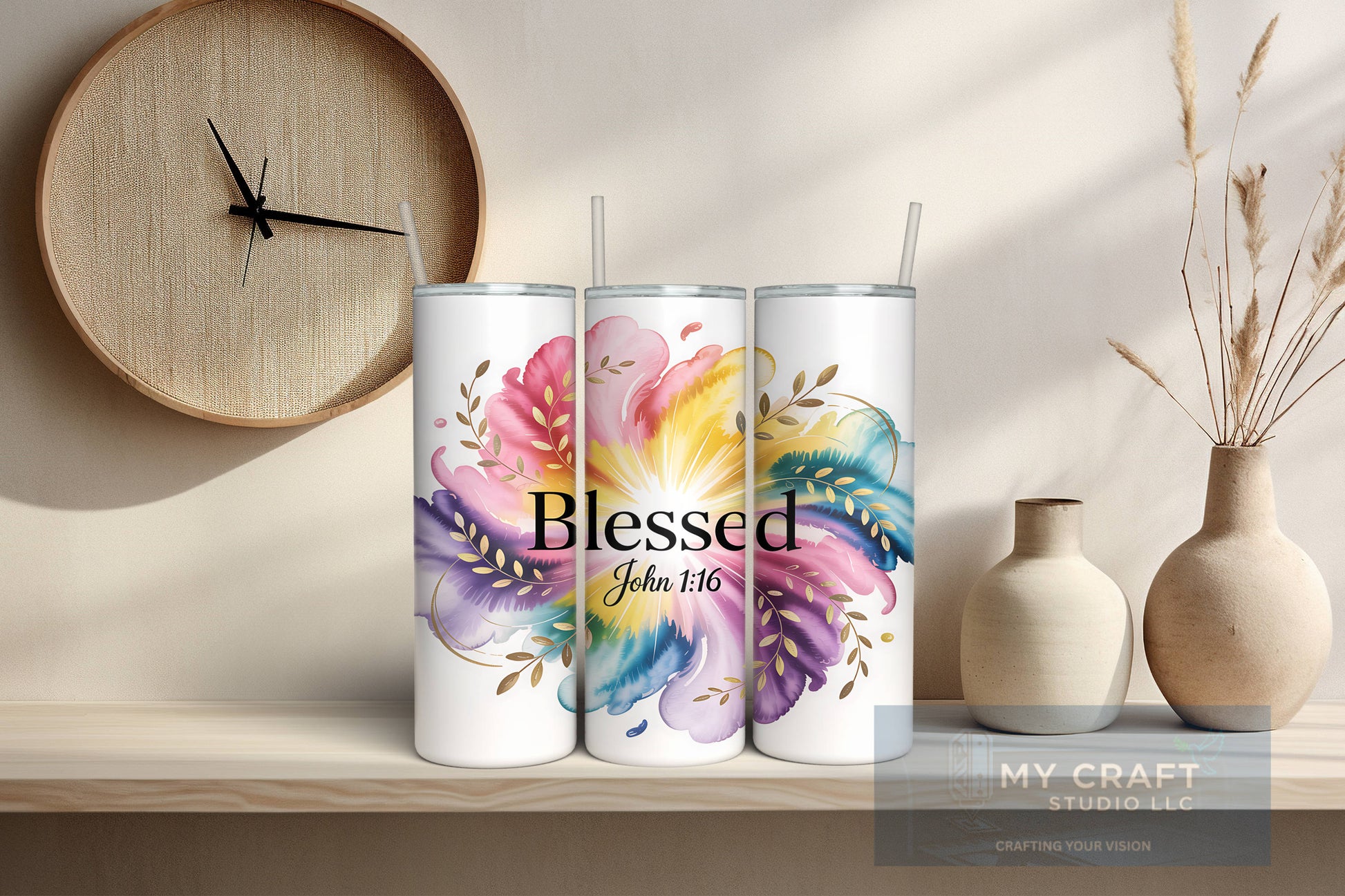 Carry a reminder of God's grace with this beautiful 20oz skinny tumbler. The design features a stunning watercolor splash of vibrant, faith-filled colors, with the word "Blessed" and the powerful verse John 1:16 boldly displayed. This sublimated tumbler is not only a work of art but a daily declaration of gratitude and faith.